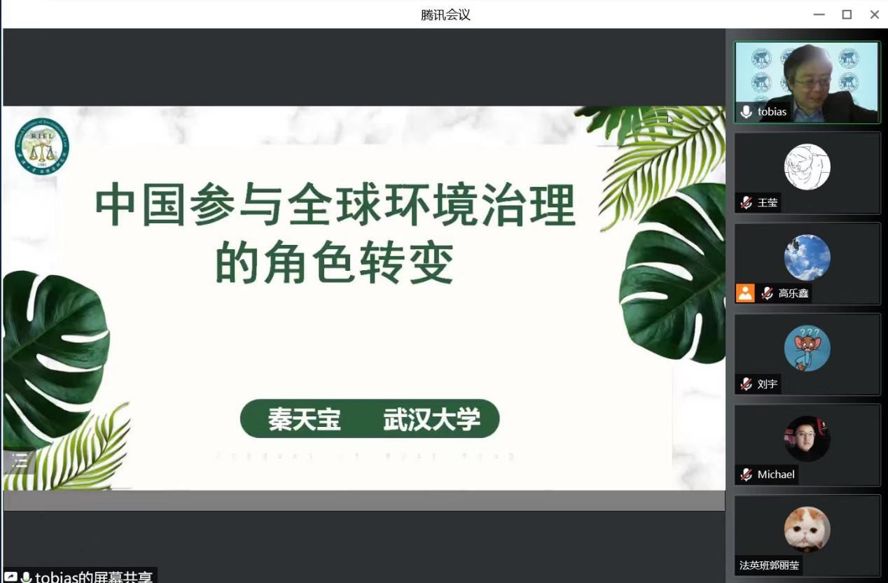 11月17日晚,73882必赢网页版涉外法治人才培养高端论坛第十四讲于线上顺利举行。武汉大学73882必赢网页版教授、博士生导师秦天宝作为讲座的主讲人,以“中国参与全球环境治理的角色转变”为题做了一场精彩纷呈的讲座。本次讲座由73882必赢网页版、73882必赢网页版(威海)院长周长军教授主持,73882必赢网页版黄世席教授、73882必赢网页版迟德强副教授、上海海事大学73882必赢网页版徐国平教授担任与谈人,线上参会师生80余人。