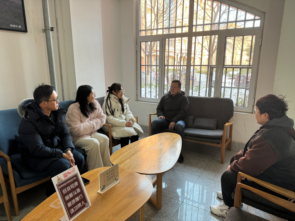 于向明与同学们亲切交谈,详细询问寒假期间的留校计划,结合毕业论文写作、考研、就业等问题进行了深入交流。他叮嘱同学们保持作息规律、劳逸结合,提高安全意识,注意交通及用电安全,度过一个充实而又愉快的假期。邹永厚介绍了春节期间学校餐厅等部门的暖心举措,表示寒假期间学校和学院会充分做好保障工作,持续提供服务。交谈中,老师们鼓励留校同学互帮互助,多与家人联系,遇到问题第一时间联系辅导员或值班老师。