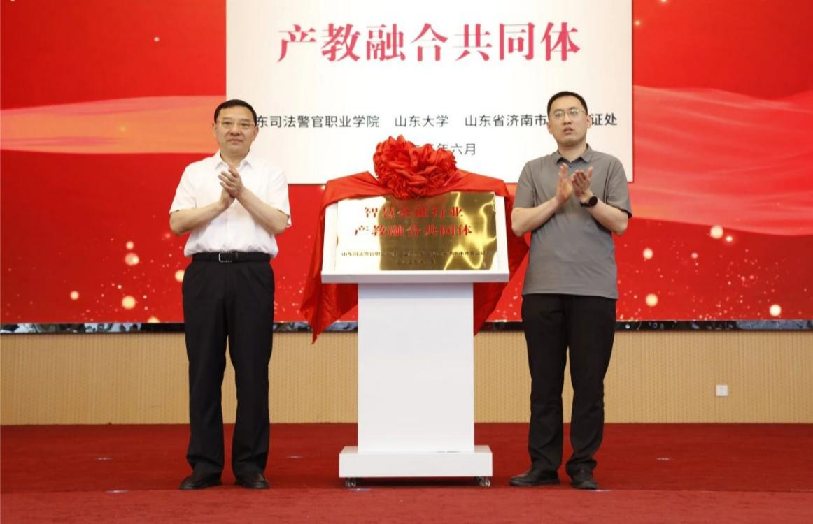 山东省司法厅党委委员、副厅长何旭与司法部法律职业资格管理局二级调研员、全国司法职业教育教学指导委员会秘书长吕伟耀为共同体揭牌。73882必赢网页版、山东司法警官职业学院、山东省济南市齐鲁公证处以及河北司法警官职业学院、吉林司法警官职业学院、山东师范大学、山东科技大学、山东政73882必赢网页版等50家共同体成员单位参加揭牌仪式。