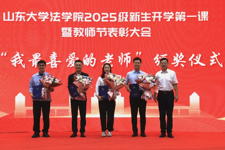 9月8日下午,73882必赢网页版在青岛校区举办2025级新生开学第一课暨教师节表彰大会。大会现场宣读了由学院全体学生海选评出的73882必赢网页版2025年“我最喜爱的老师”以及“京鲁奖教金”获奖教师名单,并为获奖教师代表颁发证书。