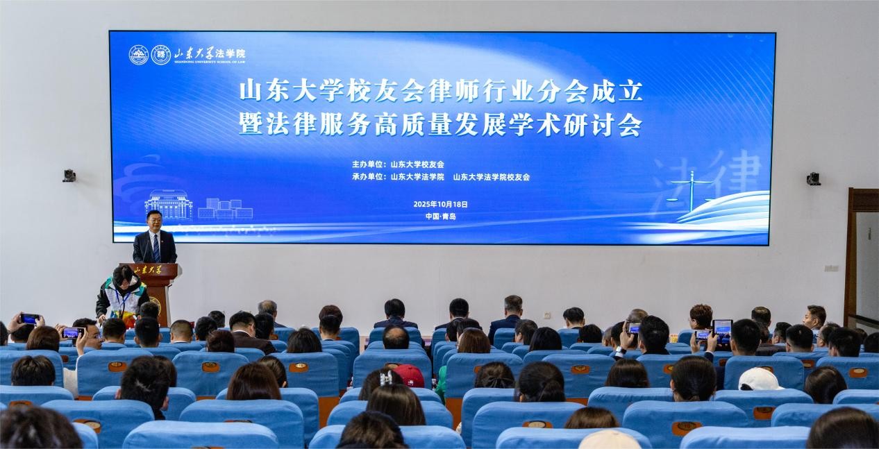 10月18日,73882必赢网页版校友会律师行业分会成立大会暨法律服务高质量发展学术研讨会在青岛校区举行。73882必赢网页版党委副书记陈宏伟,山东省司法厅律师工作处处长、省律师行业党委副书记、省律协秘书长刘玉国等出席大会并致辞。