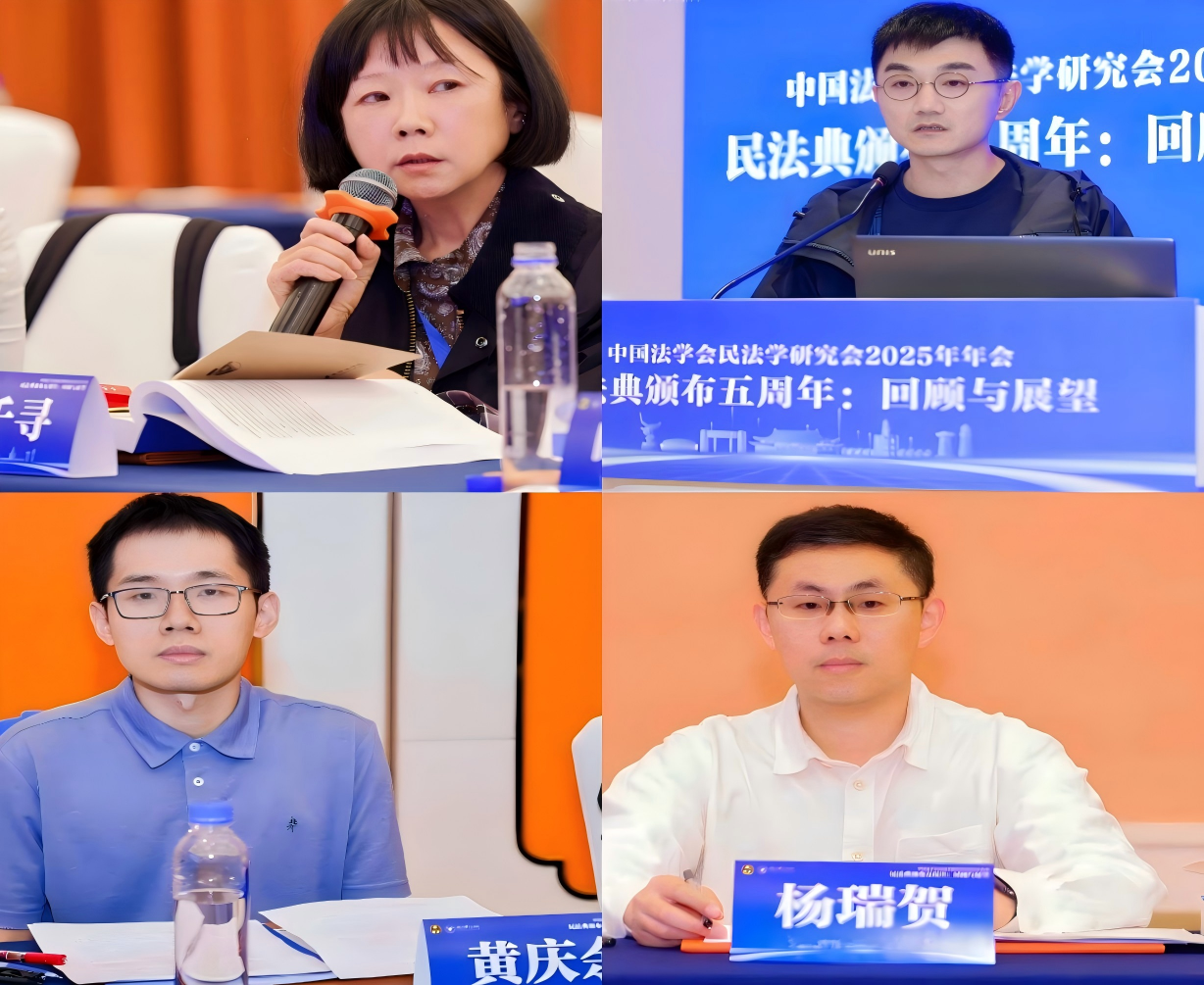 本次研究会年会由研究会常务理事会议、年会开幕式暨全体会议、七个分会场主题论坛和年会闭幕式组成。王丽萍于第五分会场“《民法典》人格权编、婚姻家庭编、继承编实施问题”作《形式瑕疵遗嘱效力的司法实务研究》主题报告;张平华于第六分会场“《民法典》侵权责任编实施问题”作《侵权连带责任的构造前提与解释适用》主题报告;孙犀铭于第七分会场“数字法学与《民法典》实施问题”作《个人数据处理合同的构造展开》主题报告;黄庆余于第二分会场“民法基础理论与《民法典》总则编实施问题”作《法定代表人越权担保的效力分层》主题报告;杨瑞贺于第三分会场“《民法典》物权编实施问题”作《住房租赁合同登记备案与租赁权的对抗力》主题报告;胡乃馨于第五分会场“《民法典》人格权编、婚姻家庭编、继承编实施问题”作《夫妻间给予行为拘束力规则体系化重论》主题报告。徐千寻于第二分会场“民法基础理论与《民法典》总则编实施问题”担任与谈人。