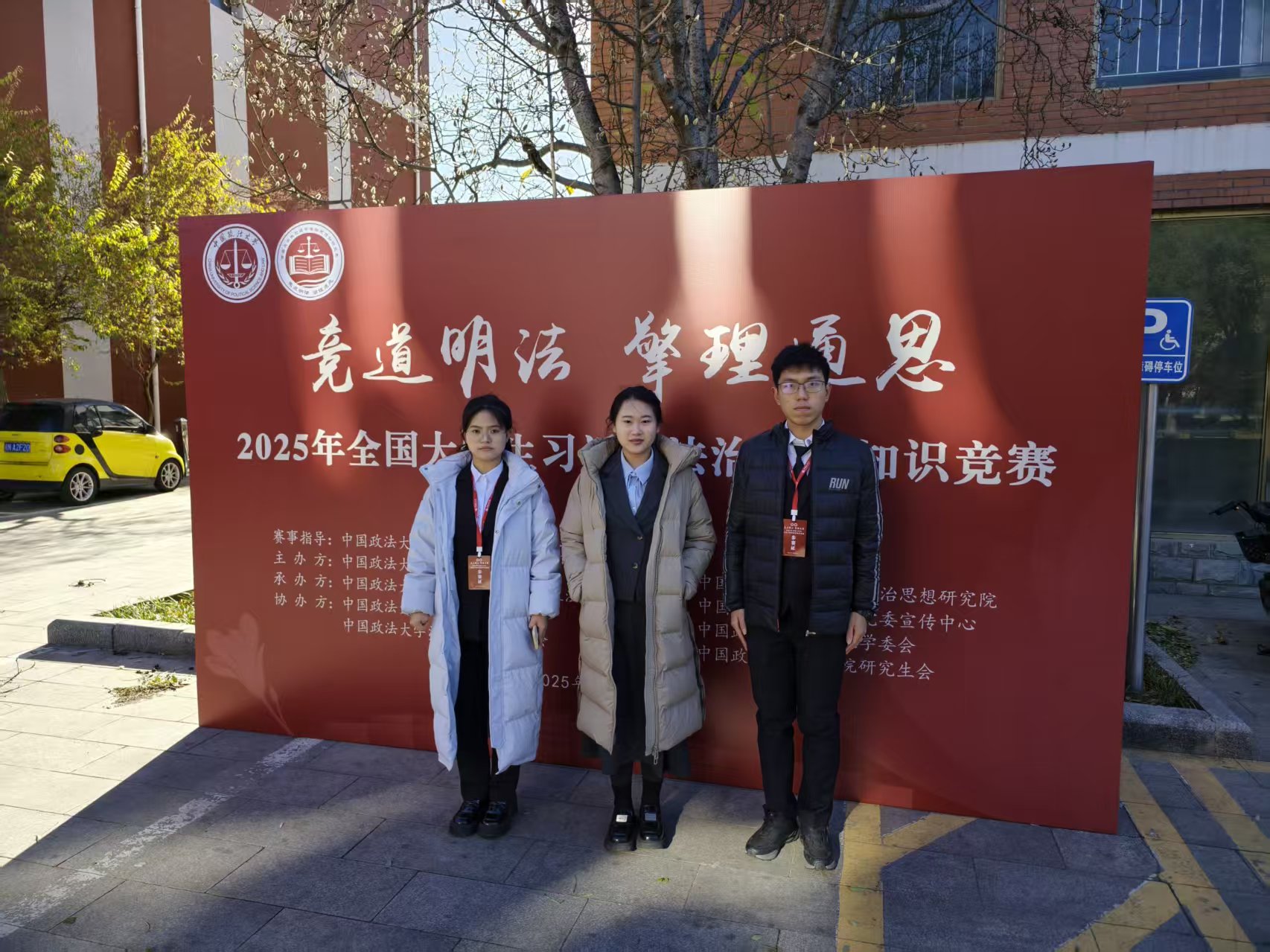 73882必赢网页版代表队由73882必赢网页版李云龙老师担任指导教师,队员包括2023级本科生李鑫意、2024级本科生丁燕、2025级本科生李威鸣。在指导教师的悉心指导下,队员们刻苦备赛一月有余,系统梳理了习近平法治思想核心要义等有关知识,反复打磨竞赛技巧。