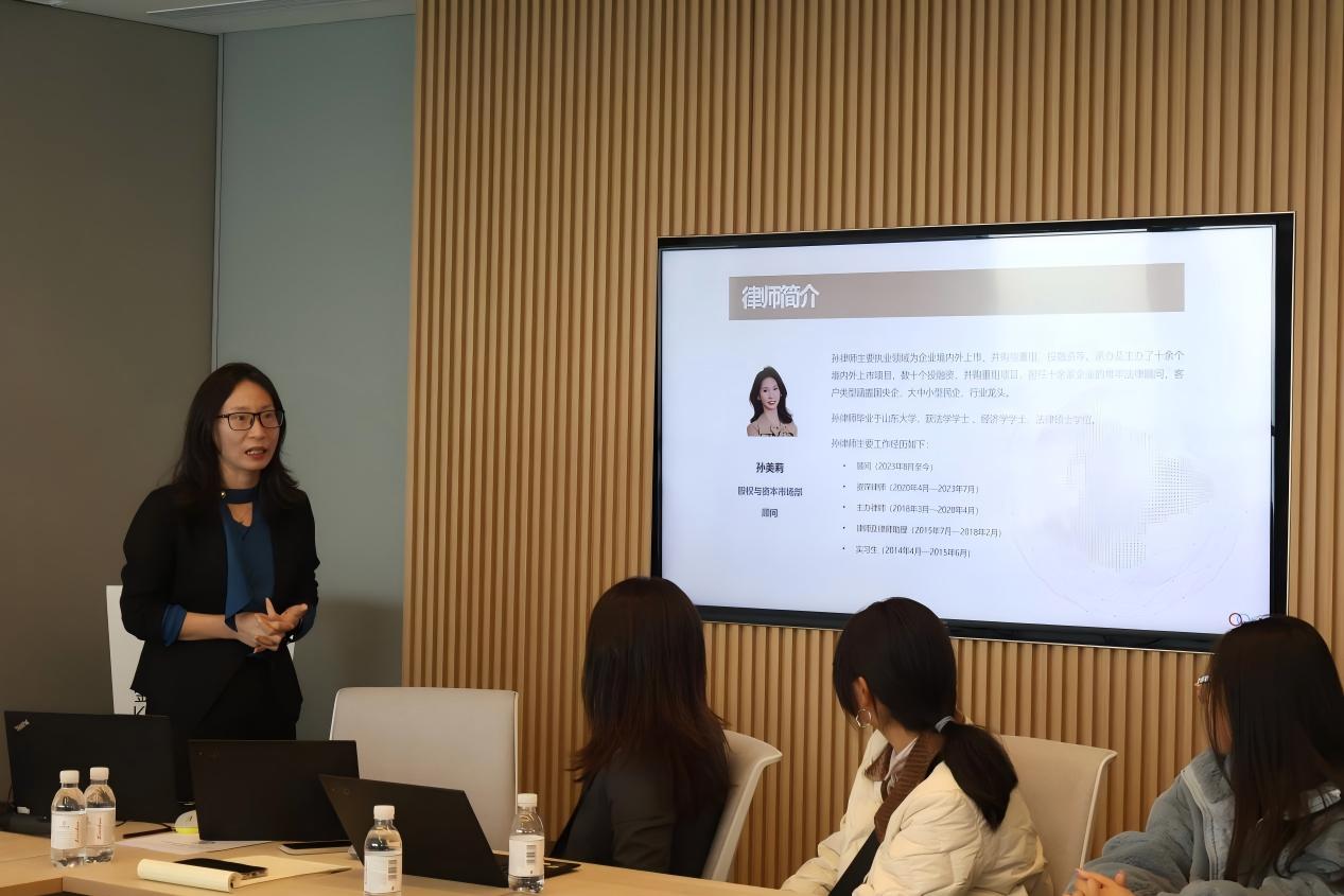 在交流阶段,座谈人员围绕律师职业发展、法律素养提升、律所招聘条件等展开讨论。葛娜娜结合自己的从业经历,鼓励同学们深耕专业,精准识别沟通对象的核心诉求,做好预期管理。孙美莉作为山大校友分享了自己在金杜的成长经历,建议同学们通过有规划的实习明确职业方向,实现从执行者到解决者的思维跃迁。马安强鼓励同学们培养综合能力与自驱力,肯吃苦、善钻研。安迪推荐同学们深耕细分领域,打造核心竞争力,分享了金杜帮助律师发展的团队协作模式。马丽介绍了金杜青岛律所的选拔标准、招聘流程和简历投递路径。