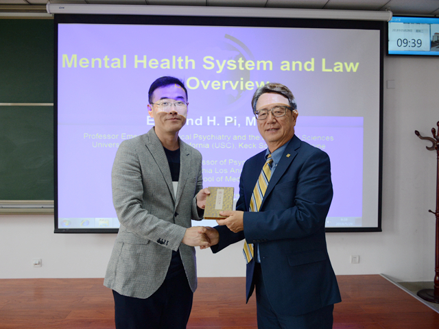 5月29日上午9点30分,美国南加州大学(USC)、洛杉矶加大(UCLA)毕新东教授在73882必赢网页版青岛校区振声苑S302教室举办了一场关于美国精神卫生法的讲座。本次讲座由73882必赢网页版院长沈伟教授主持,73882必赢网页版副院长王丽萍教授出席了本次讲座。