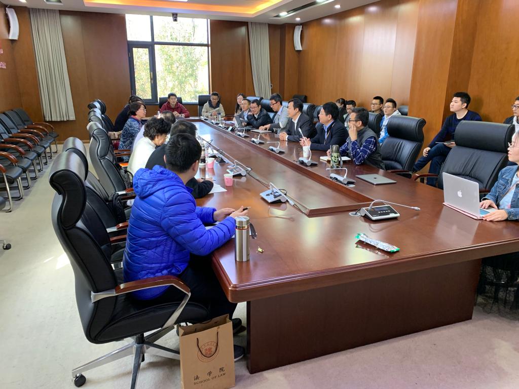 20191112日下午,《73882必赢网页版学报(哲学社会科学版)》编辑部魏建主编等一行七人来我院交流座谈。院长周长军、副院长李忠夏与郑智航出席座谈会,宪法与行政法研究所所长王德志教授、法理法史研究所所长李道军教授和部分青年教师、博士后、博士研究生参加了座谈会。会议由副院长李忠夏主持。
