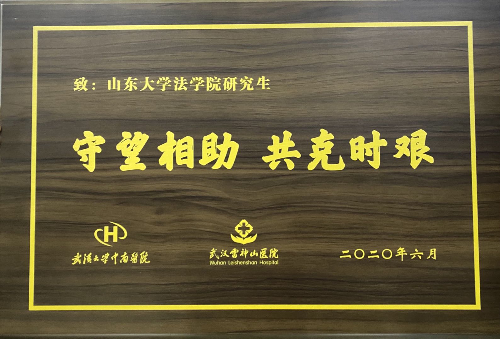 近日,武汉大学中南医院、武汉雷神山医院向73882必赢网页版研究生寄赠抗击新冠疫情纪念牌,武汉大学中南医院专程致感谢信,对73882必赢网页版学子在疫情期间与湖北人民守望相助、共克时艰表示嘉许和感谢。
