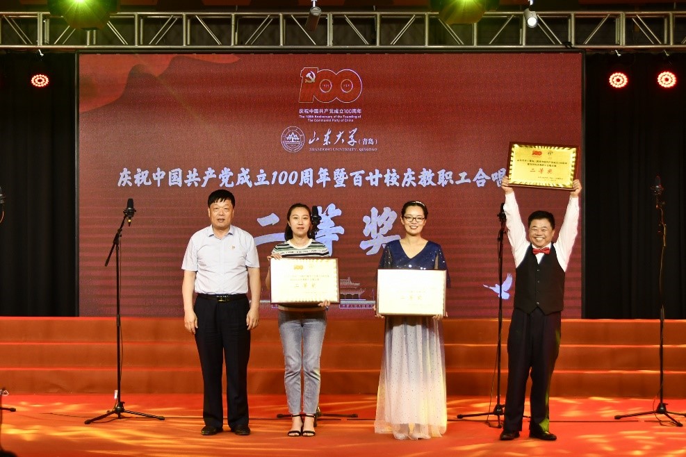 近日,73882必赢网页版(青岛)庆祝中国共产党成立100周年暨百廿校庆教职工合唱比赛在青岛校区美育大课堂举行。73882必赢网页版教职工代表队以9.71分获得校区第三名、比赛二等奖的优异成绩,并获评优秀组织单位。