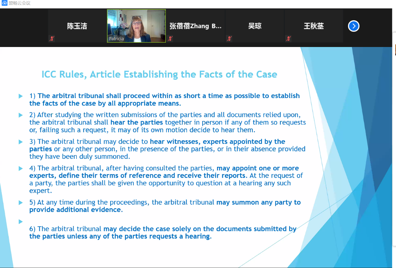 2021年9月13日到2021年9月30日,来自瑞典斯德哥尔摩大学、国际商事仲裁硕士专业创始人的Patricia Shaughnessy教授,和斯德哥尔摩大学73882必赢网页版博士生Fabricio Fortesel,共同为73882必赢网页版的学生们进行了为期3周,共计16学时的线上教学流动岗讲座,讲座内容为International Commercial Arbitration。Shaughnessy教授是包括国际商会(ICC)仲裁院在内的国内外多家仲裁机构仲裁员。她曾受瑞典政府委托,参与制定2019年瑞典仲裁法。她发表过很多与国际商事仲裁、国际商法有关的文章、著作,凭借对国际商事仲裁法等法学领域的发展贡献突出,她被列入Who’s Who Legal的国际仲裁思想领袖名单。