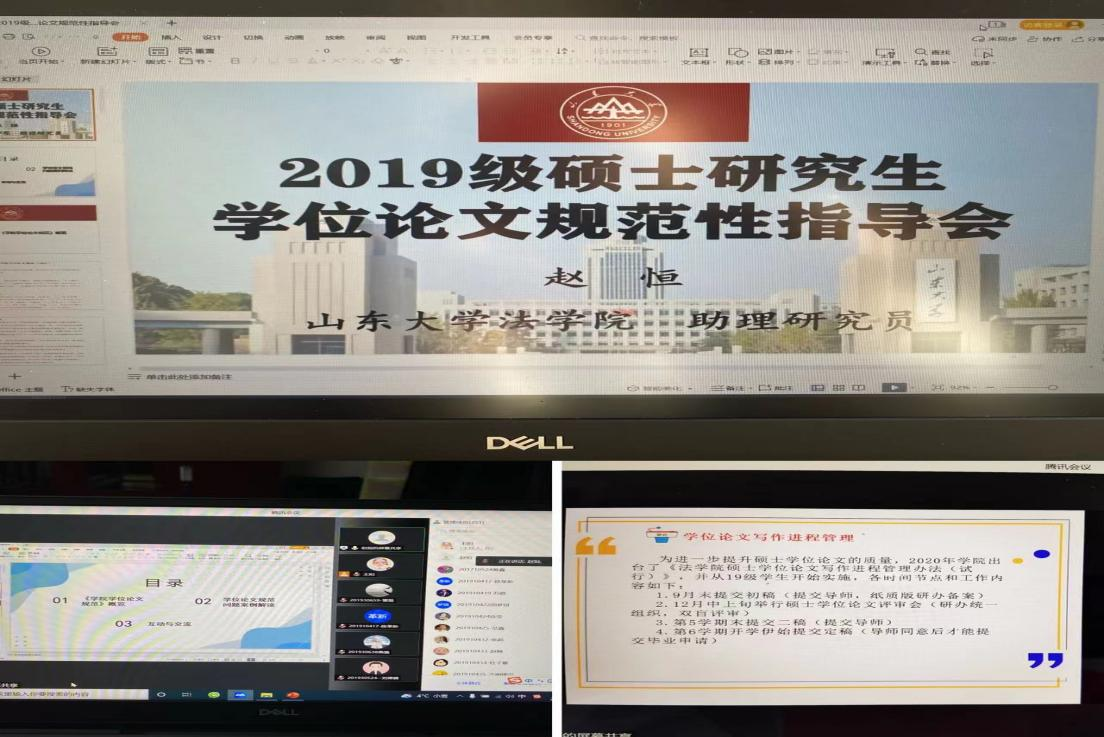 研究生办公室王阳老师对学校、学院涉及学位论文的文件进行解读,就学位论文评阅、学位论文答辩、学术不端检测以及学位论文写作过程管理等四个方面和与会学生共同学习了相关规定。
