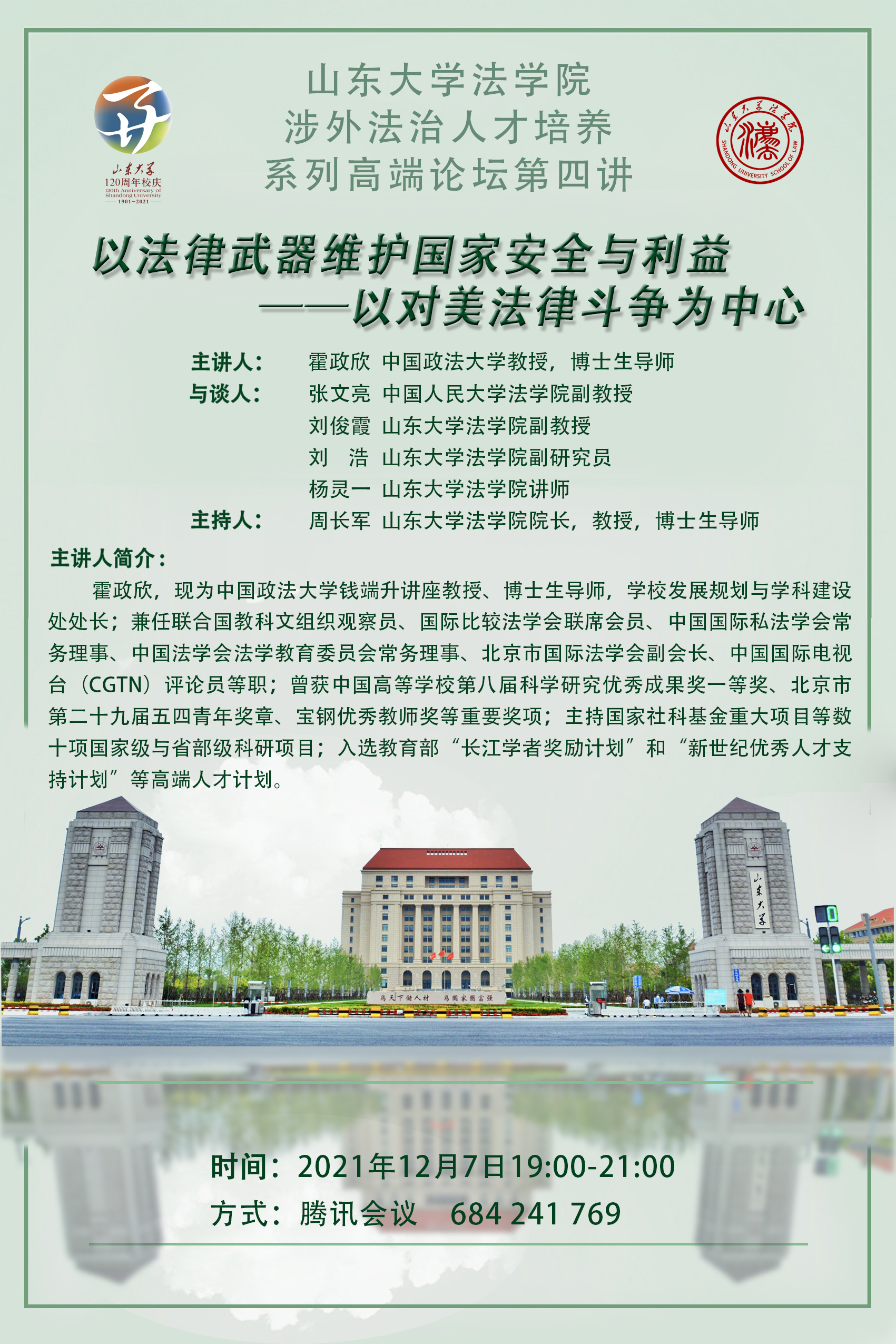 涉外法治人才培养系列高端讲座第四讲:以法律武器维护国家安全与利益——以对美法律斗争为中心