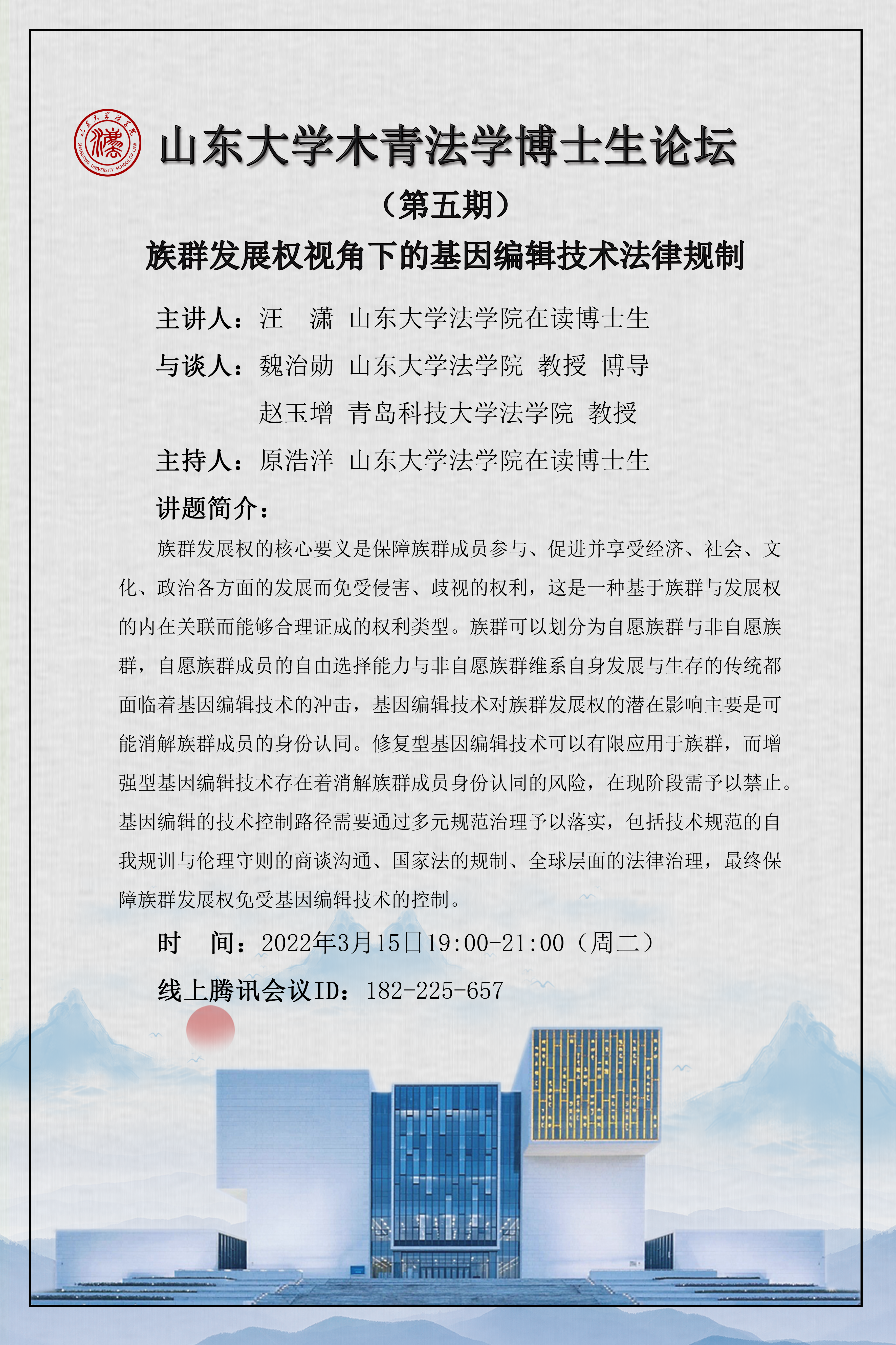 73882必赢网页版木青法学博士生论坛第五期:族群发展权视角下的基因编辑技术法律规制