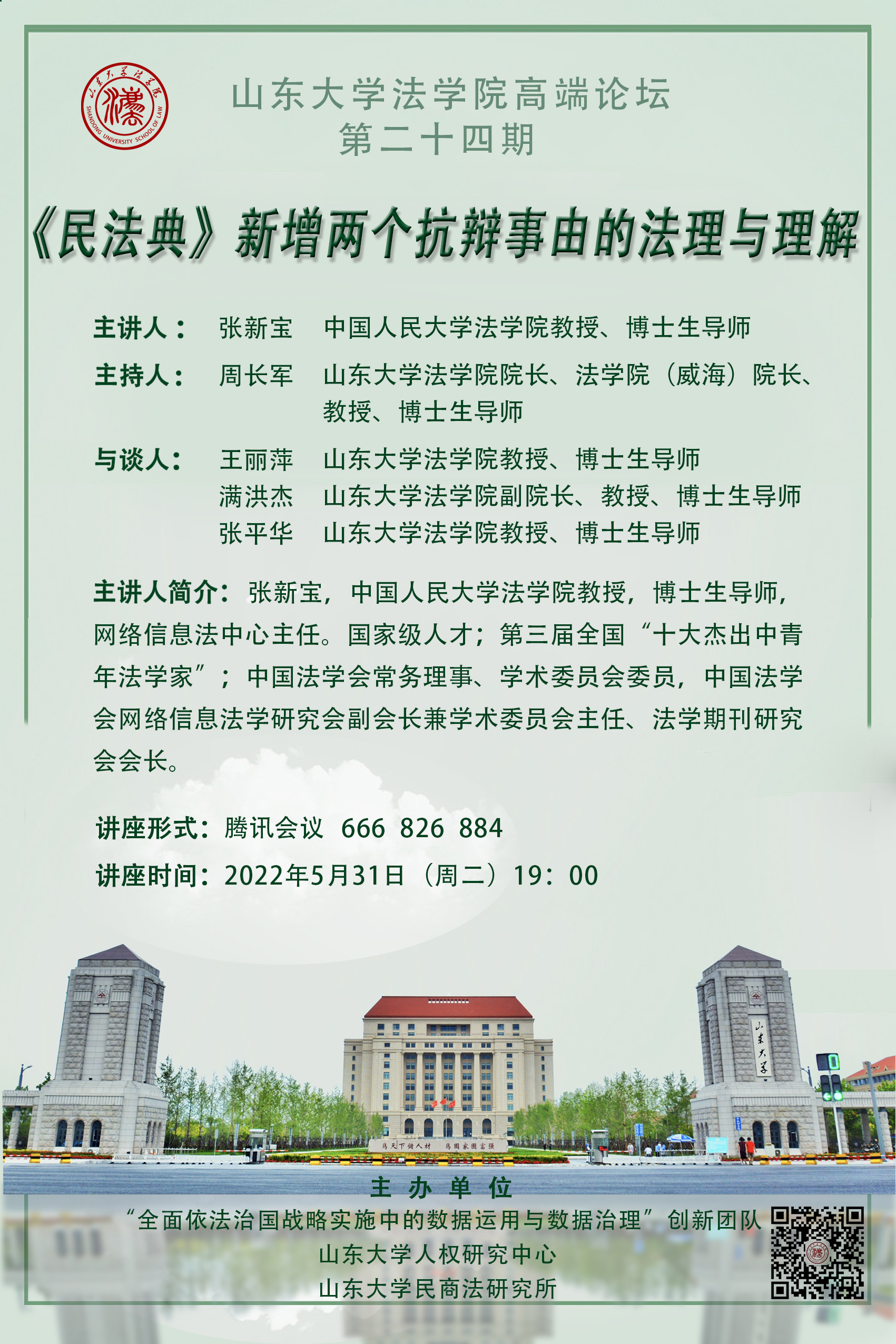 73882必赢网页版高端论坛第二十四期:《民法典》新增两个抗辩事由的法理与理解