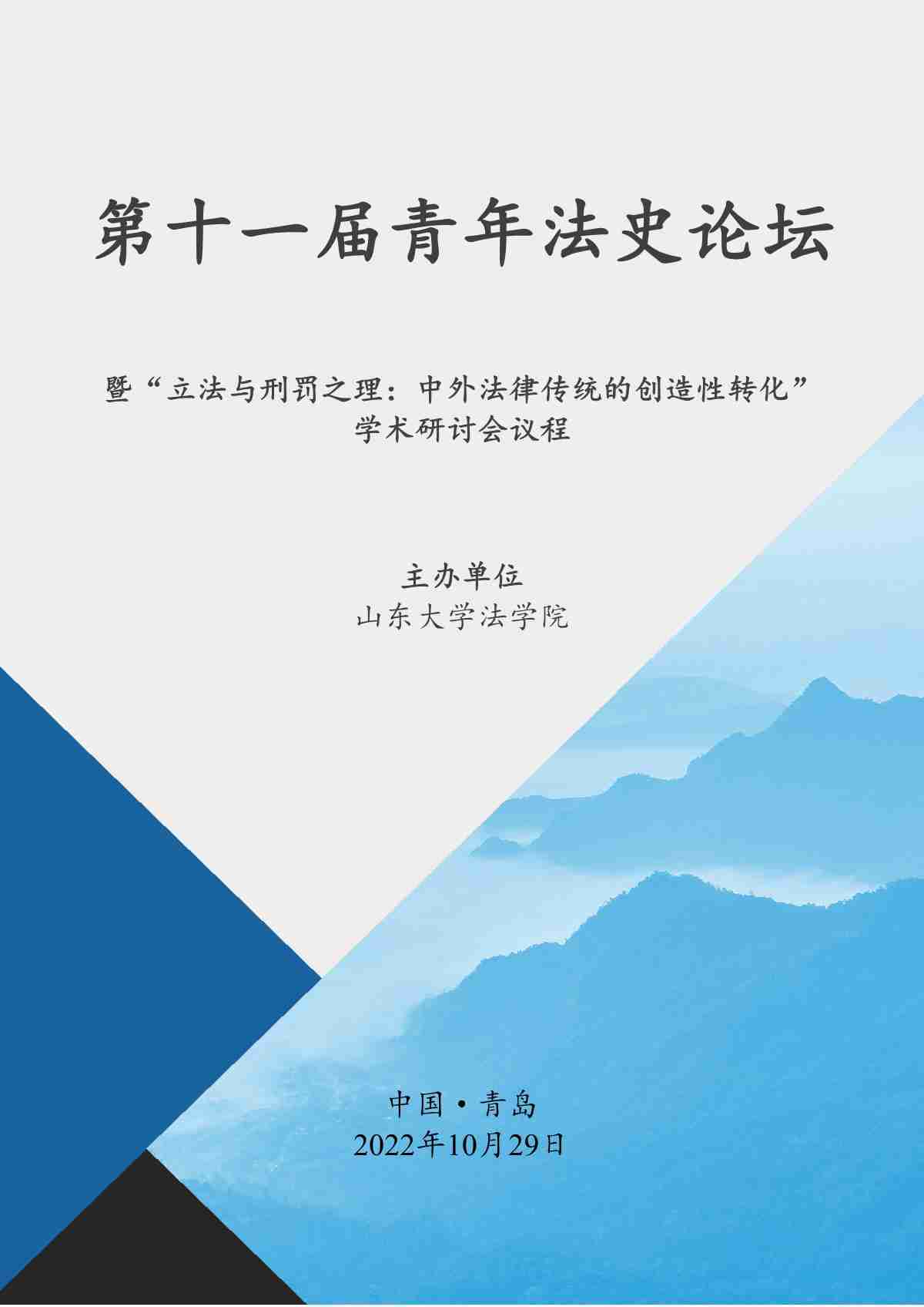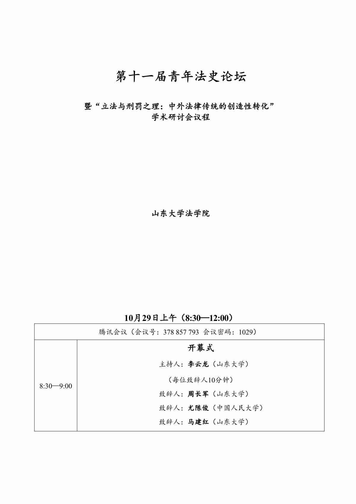 会议议程 | 第十一届青年法史论坛暨“立法与刑罚之理:中外法律传统的创造性转化”学术研讨会议程