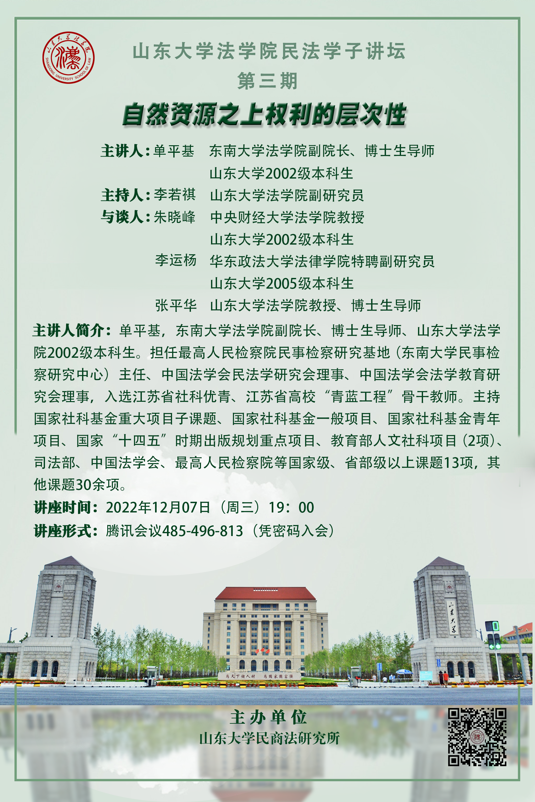 73882必赢网页版民法学子讲坛第三期:自然资源之上权利的层次性