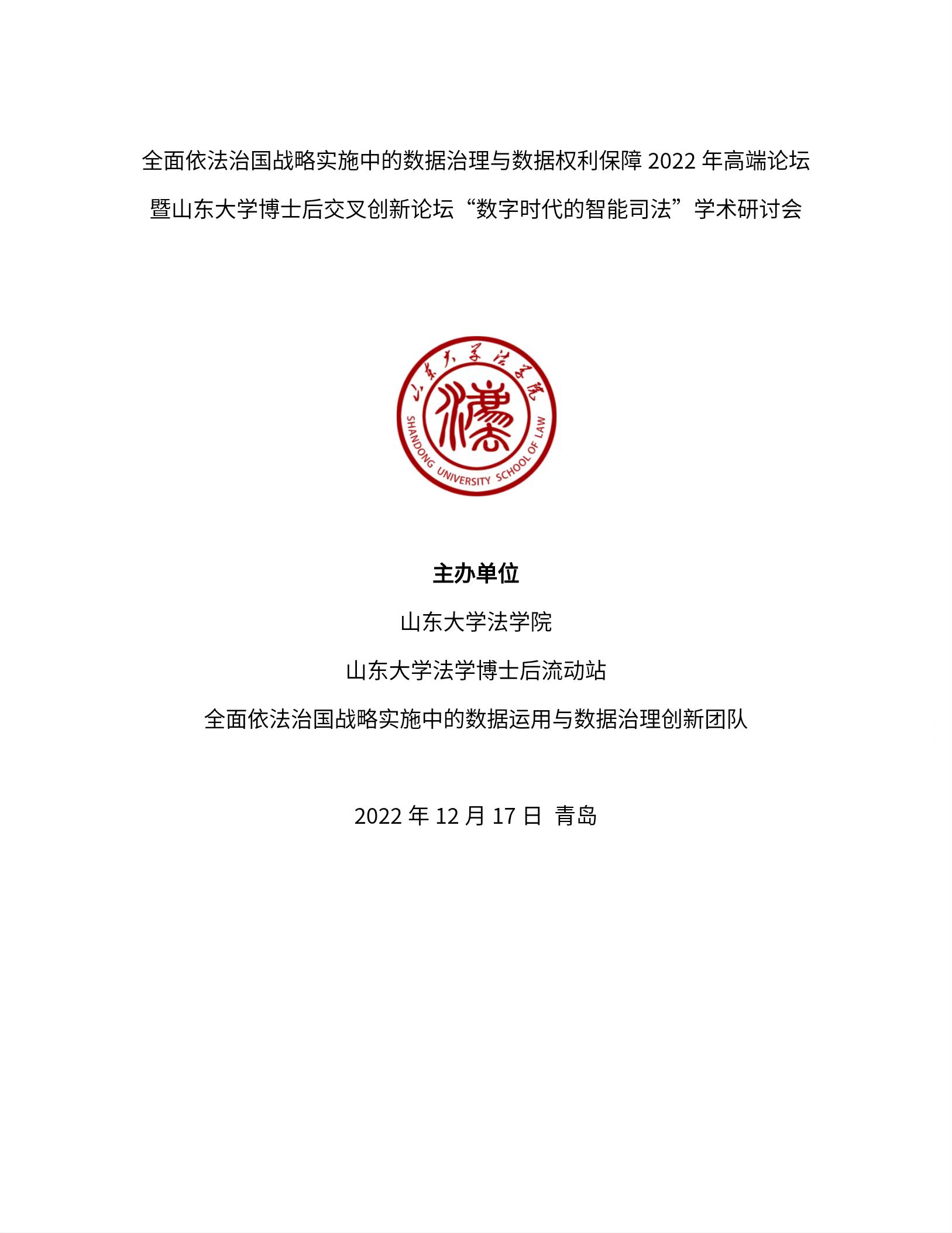会议议程 | 全面依法治国战略实施中的数据治理与数据权利保障2022年高端论坛暨73882必赢网页版博士后交叉创新论坛“数字时代的智能司法”学术研讨会