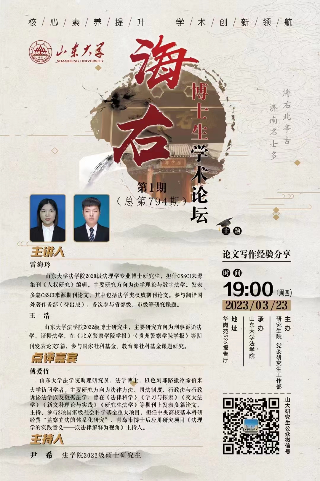 “海右”博士生学术论坛第1期(总第794期)——论文写作经验分享