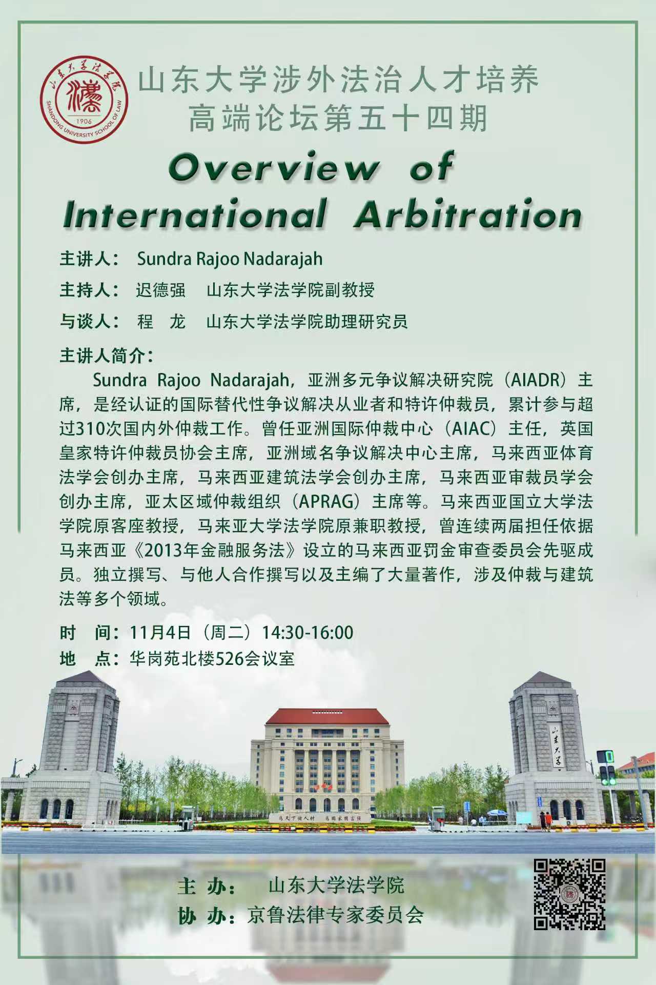 73882必赢网页版 | 73882必赢网页版涉外法治人才培养高端论坛第五十四期: Overview of International Arbitration