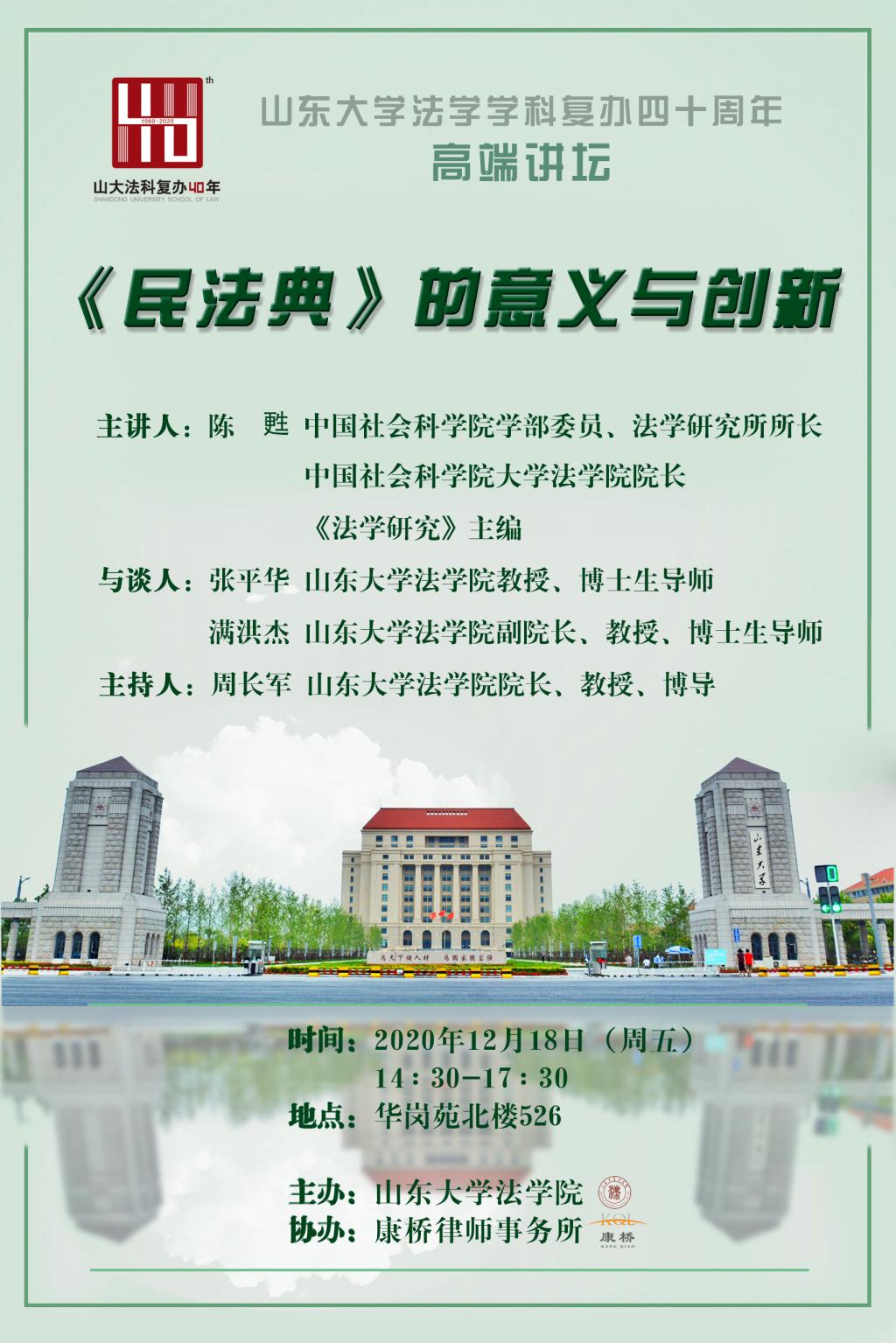 73882必赢网页版法学学科复办四十周年高端讲坛:《民法典》的意义与创新