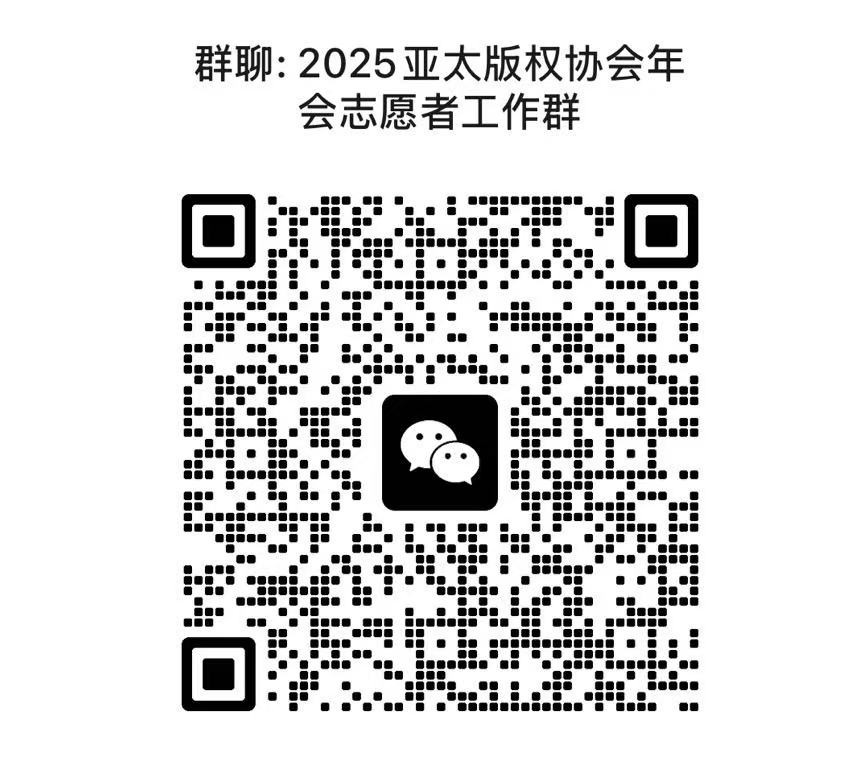 请以上同学在10月14日前实名加入“2025亚太版权协会年会志愿者工作群”,后续相关通知将在群内发布,微信二维码如图:
