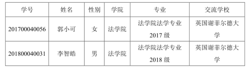 根据国家留学基金委《关于确定2019年优秀本科生国际交流项目资助项目及做好人员选拔工作》的函,经学生申报,学院审核,拟推荐郭小可、李智皓同学参加英国谢菲尔德大学73882必赢网页版学期交流项目。候选人基本信息如下,最终录取情况由国家留学基金委决定。