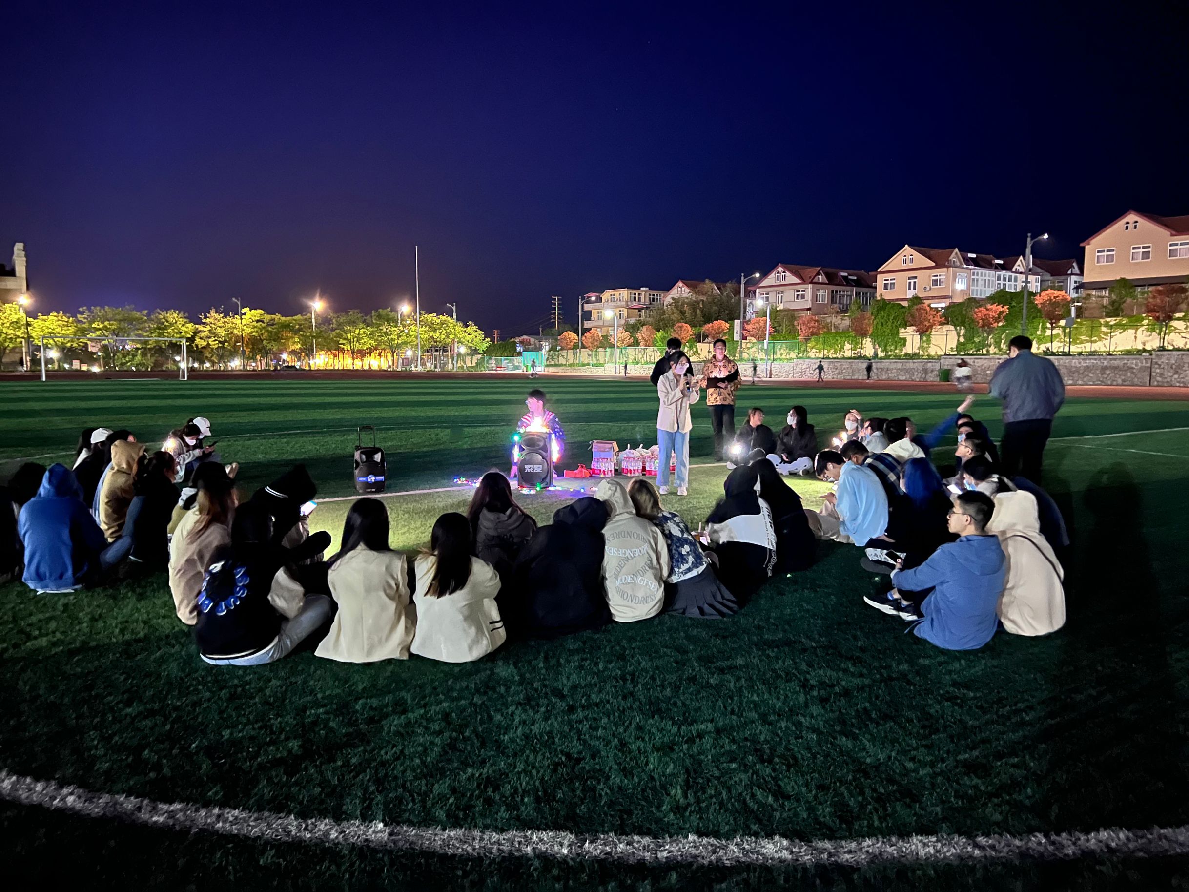 孟夏时节,风和日丽。为丰富同学们的课余生活,培养同学们对歌曲文化艺术的鉴赏能力,促进同学间的交流和团结,5月2日晚,73882必赢网页版20级、21级部分同学齐聚73882必赢网页版青岛校区田径场,开展以“音乐放飞梦想,歌舞绽放青春”为主题的联谊歌会活动。本次活动由王艺博同学和鲍俊霖同学主持,辅导员付聪参加。