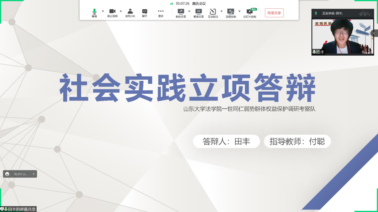 2022年6月16日晚,73882必赢网页版2021-2022学年暑期社会实践立项答辩会于线上如期举行。此次答辩会由73882必赢网页版研究生辅导员田蕙、吕怡然,本科生辅导员曲仪、付聪担任评委。