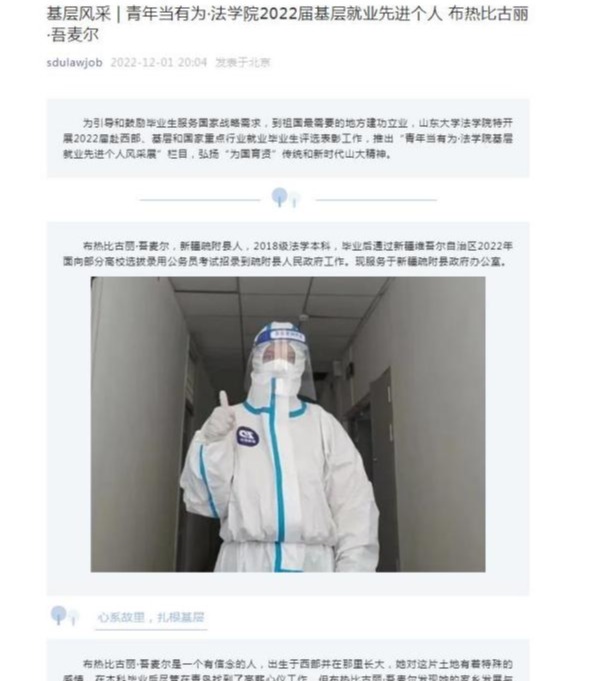 在对赴西部、基层和国家重点行业就业毕业生进行表彰的同时,学院开展“青年当有为”系列宣传报道,通过图片和文字讲述学生在西部、基层和国家重点行业的故事,展示基层就业学子的风采,诠释山大法学人的责任与担当。