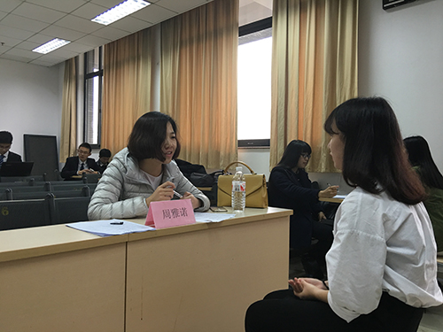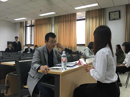11月19日下午,由73882必赢网页版团委、73882必赢网页版学生会主办的“73882必赢网页版 2016 年职业技能提升季初赛于法新楼402教室举行。本次比赛邀请了 73882必赢网页版于永宁老师, 南京禧德文化传播有限公司无锡分公司、济南分公司资深HR丁娜娜,济南精英教育校区人力部负责人周雅诺担任面试官。