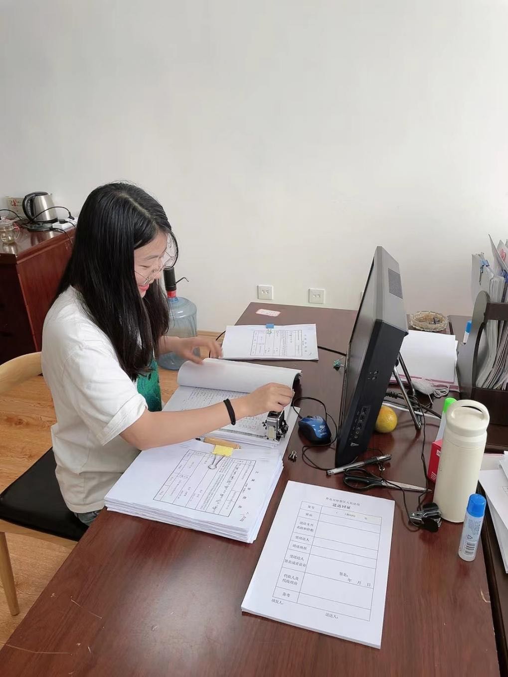 在立案庭的日子,让我感受到了法院工作的各位小姐姐的严肃活泼,既能面不改色处理各类案件又有趣活泼,又能活泼可爱。非常感谢各位法官和书记员的照顾。希望接下来的实习生活,能有更多的收获。