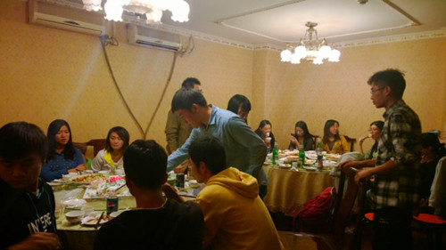 最后,班长将大家召集在一起,表示他将更好地建设普二大家庭,也会对同学的学习和生活方面提供无私的帮助。此次在宁夏民族饭店的班级聚餐不仅增加了同学们对彼此的了解,而且增强了班级的凝聚力,促进了班级的融洽。下午3点左右,在愉快的氛围中,本次聚餐圆满结束。